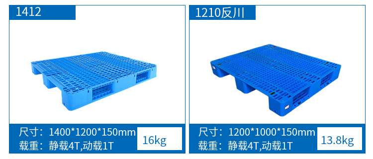 其次,托盤主要根據載重量來分,分為輕型托盤、中型托盤和重型托盤,不同載重量的托盤的重量是不相同的。輕型托盤一般為九腳托盤,自身的重量一般在4.5公斤到9公斤之間,中型托盤一般為田字形托盤或川字型托盤,重量在11.5公斤到15公斤。